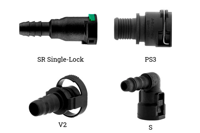 S plastic quick connectors designed according to SAE standard are the ideal means for connecting media carrying lines in combustion engines. It has been especially developed for fuel system applications and is characterized by its' "click" sound as well as its' quick and safe connection.